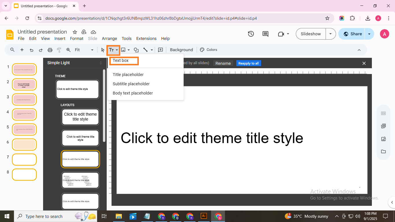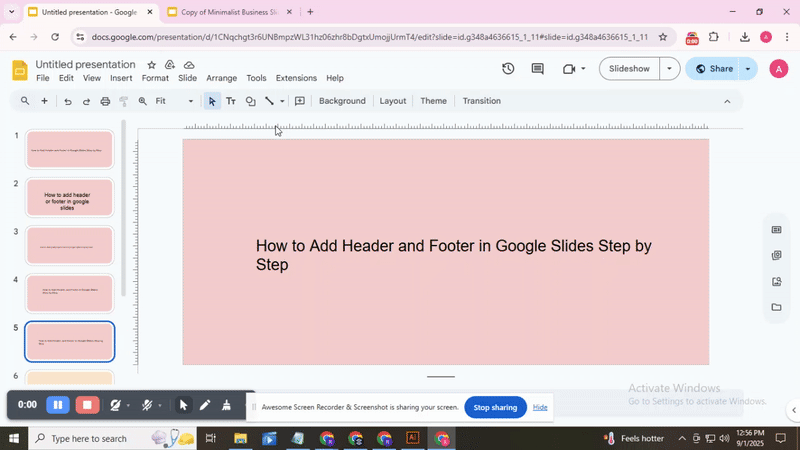 Step 1: Open your Google Slides presentation. Select the slide where you want to start adding headers and footers.