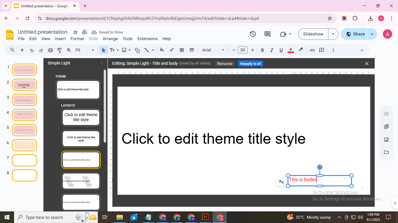 Step 4: Enter your footer text in the provided box. This could be your presentation title or company name.