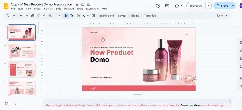 Open your presentation in Google Slides. Make sure your computer is connected to a second screen or projector. Presenter View works best when you have more than one display.