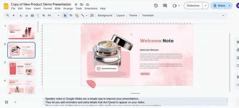 Pro Tip: Use AI tools or text suggestions to draft concise speaker notes quickly. You can then refine them in Google Slides for a personal touch.