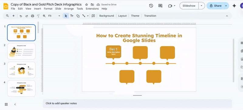 Can I create a timeline in Google Slides without using shapes?