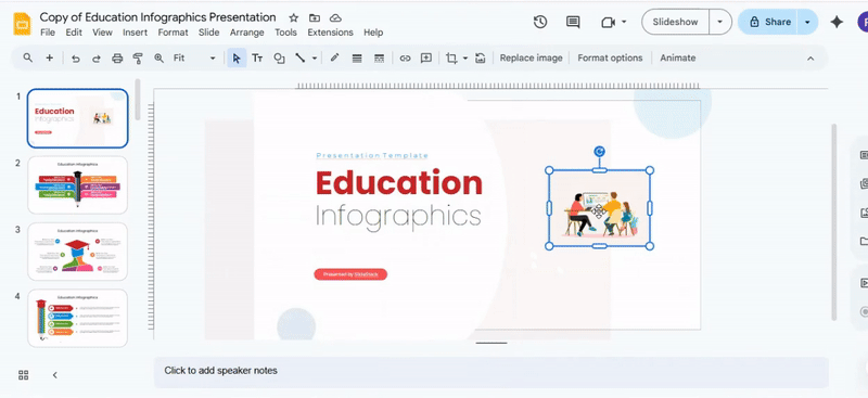 In Edit mode, GIFs usually pause. You can still move, resize, or adjust them, but they won’t animate while you work on your slide. This helps you focus on editing without distractions.