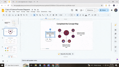 Following these steps makes your concept map clearer and easier to follow. Each idea is explained without crowding the slide, and alignment keeps the map visually balanced.
