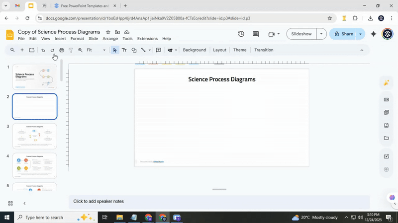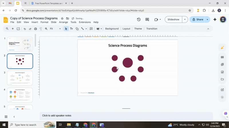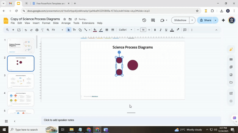 You can use ready-made templates from sources like Slidesgo. These templates already have shapes, lines, and icons in place, so you can edit them quickly.
