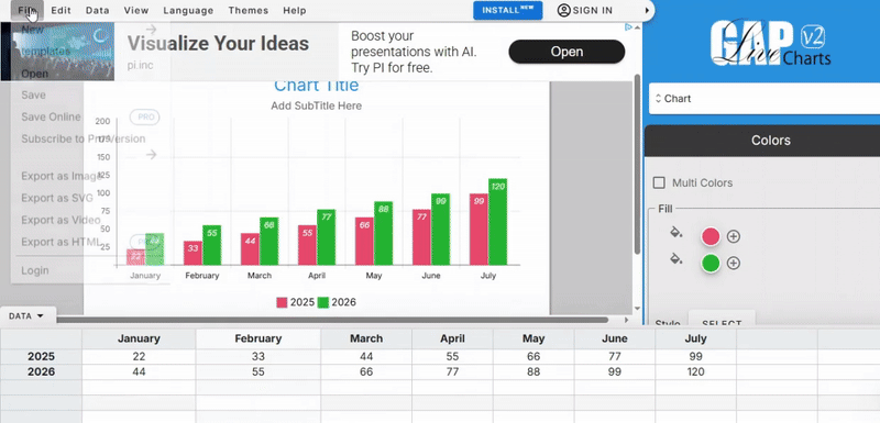 After that, you can save or export your graph for use in presentations, reports, or projects. Follow the steps below to see it in action.