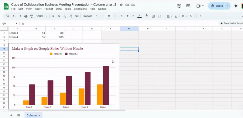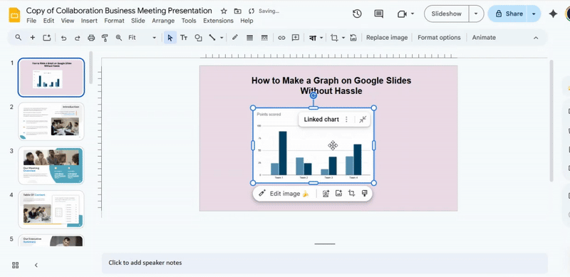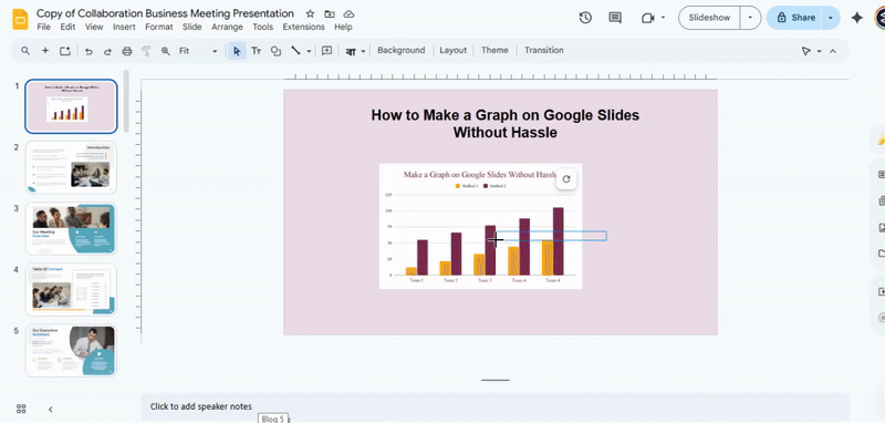 Graphs can look blurry if they are resized too much or if the image quality is low. To keep it sharp, try creating the graph directly in Google Slides or using high-resolution images. Avoid stretching images beyond their original size.