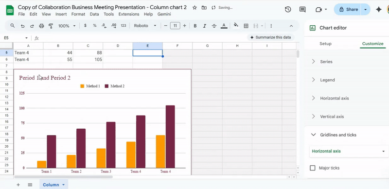 Click on the graph and select “Edit chart.” From there, you can change colors, labels, and other settings. This lets you match your presentation style or highlight key data.