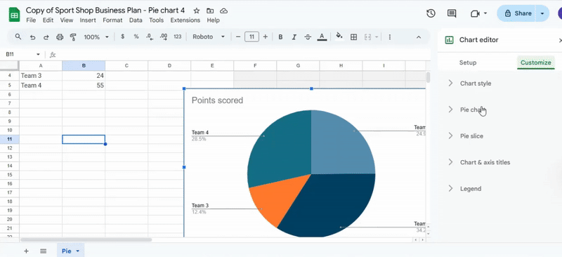 To format your pie chart, start by selecting it so the chart editor opens. This ensures any changes you make apply directly to the chart. Once the editor is visible, explore the tabs for setup, style, and colors. Each tab offers options to adjust how your chart looks, giving you control over its appearance.