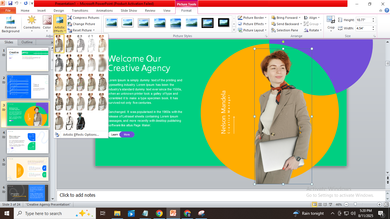 Selecting the right effect depends on your presentation’s mood. Soft effects like Pencil Sketch suit formal or professional slides. Sharper effects like Film Grain work well for creative or dynamic topics. Think about the message you want to send. Subtle effects keep the focus on your content. Bold effects draw attention but can distract if overused.